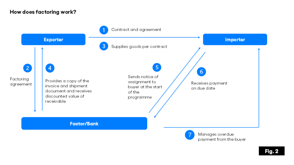 - On the due date, payment is received by the factor or bank directly from the buyer.
